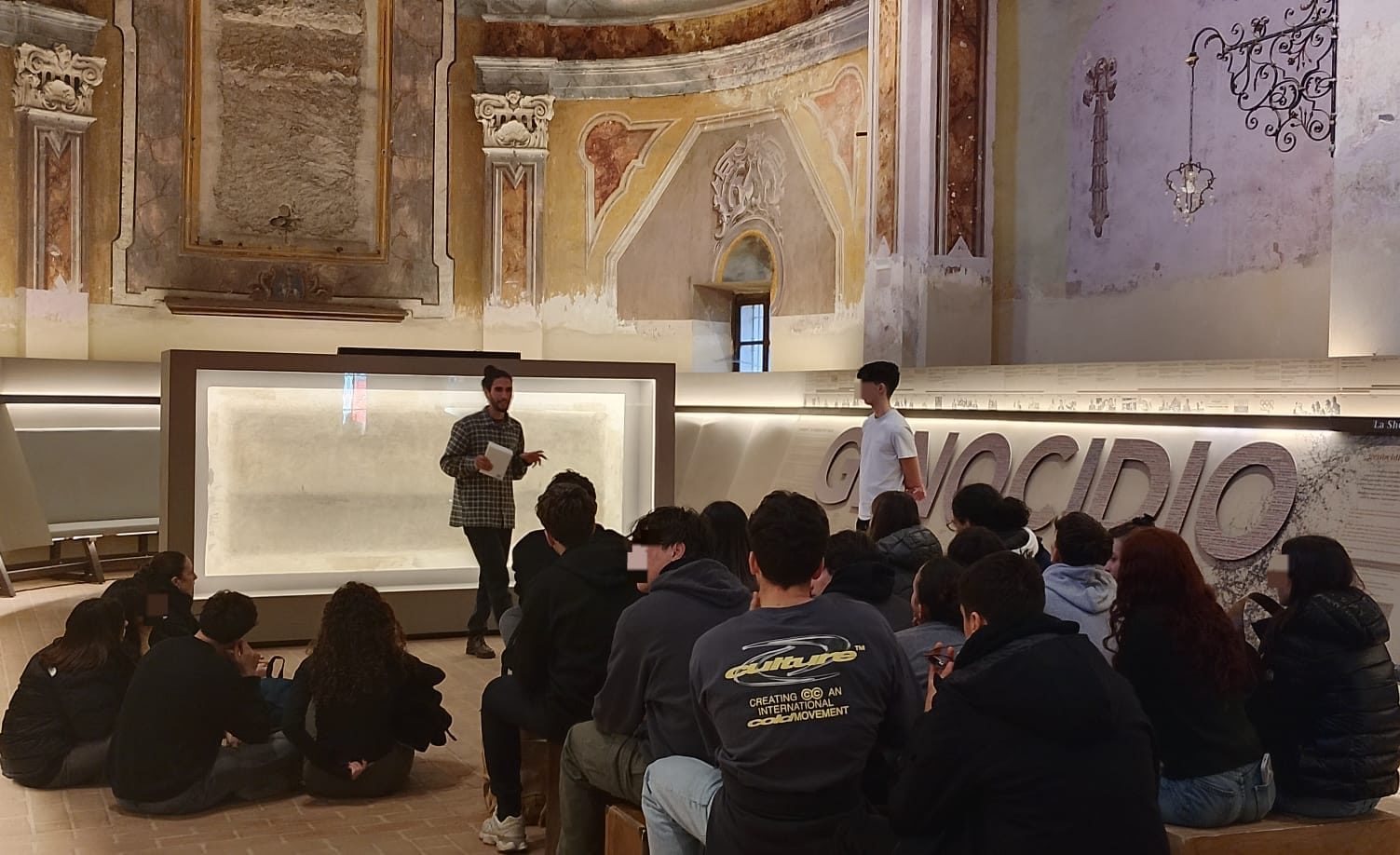 Nell’ ultima settimana il nostro allestimento ha ospitato le classi quinte del Liceo Cavour di Roma; sono stati giorni intensi e ricchi di confronto, in cui abbiamo attraversato insieme i temi fondamentali legati alla Memoria storica, riflettendo su vicende, testimonianze e responsabilità che continuano ad interrogarci nel presente. I ragazzi e le ragazze hanno potuto confrontarsi ed esprimere il loro pensiero sulle domande che l’ allestimento pone ad ogni visitatore: Si poteva evitare la Shoah? Può ancora succedere? Com’è potuta accadare?